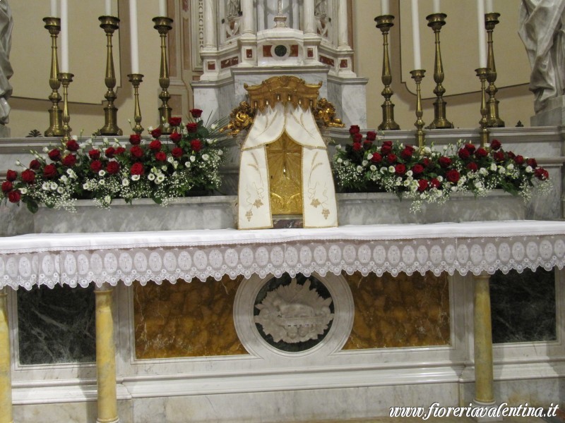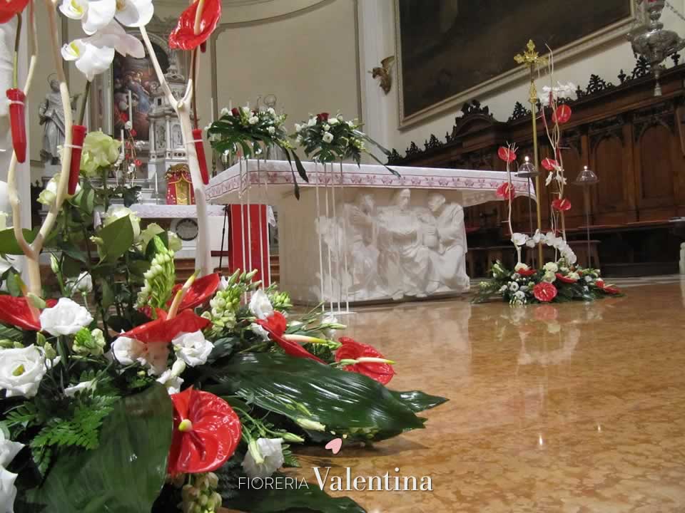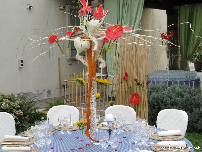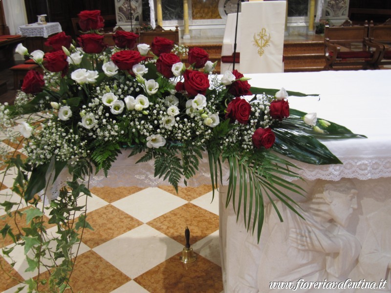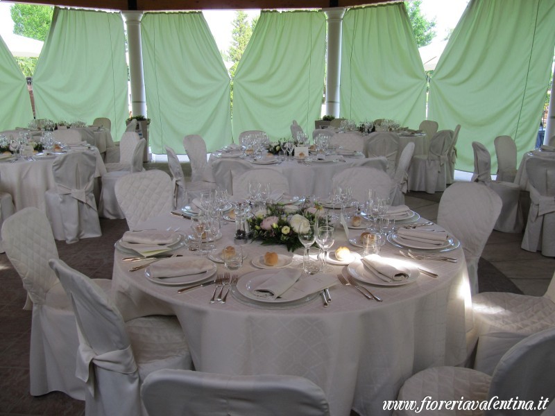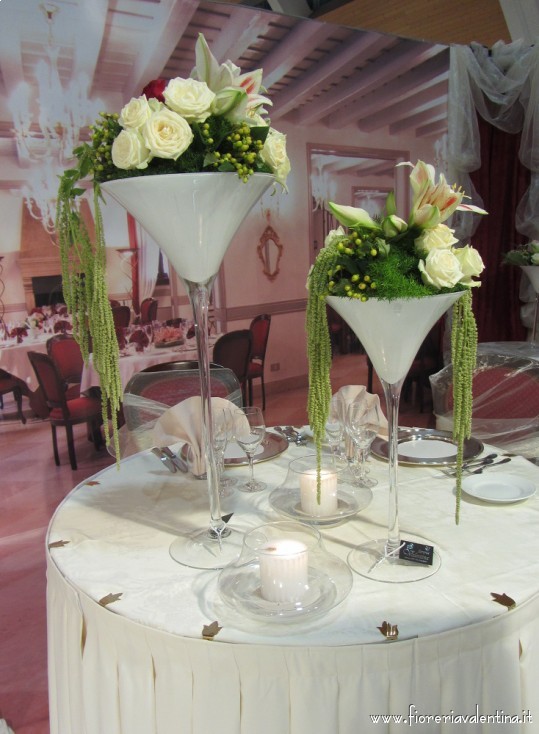 Tavolo imperiale: tulipani bianchi, rosa arancioni e fiori rossi