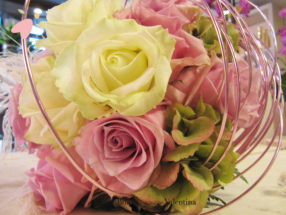 Le rose David Austin per questo splendido bouquet accompagnato da un cuore floreale