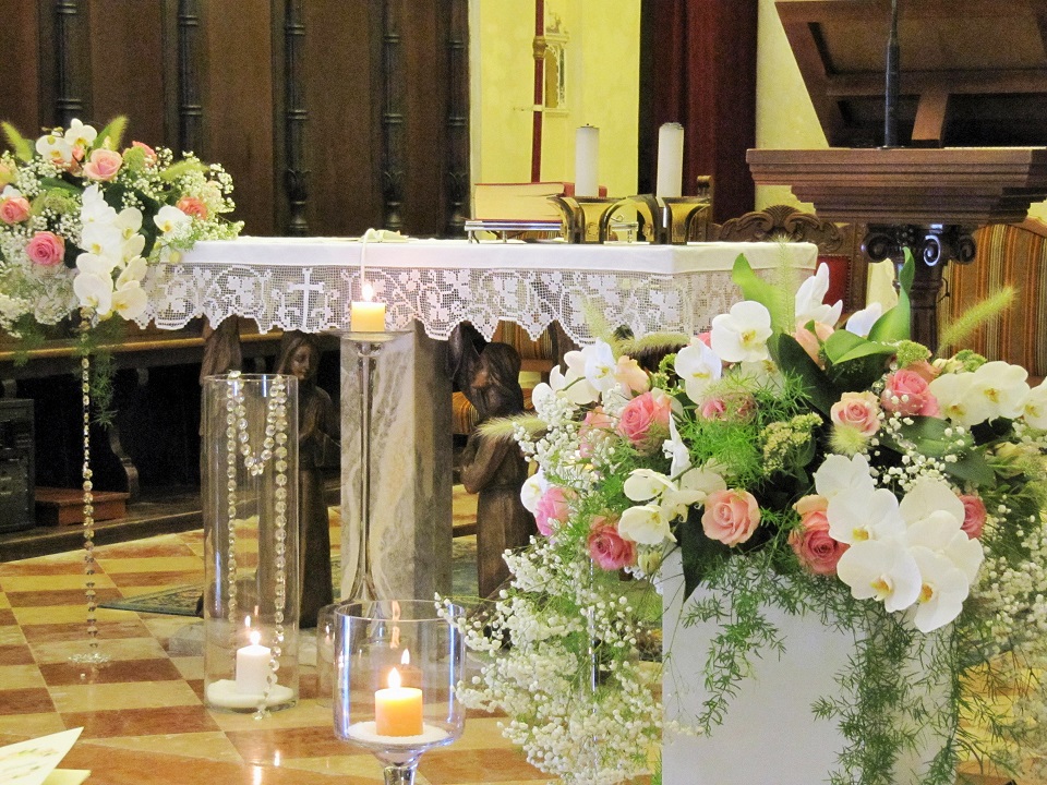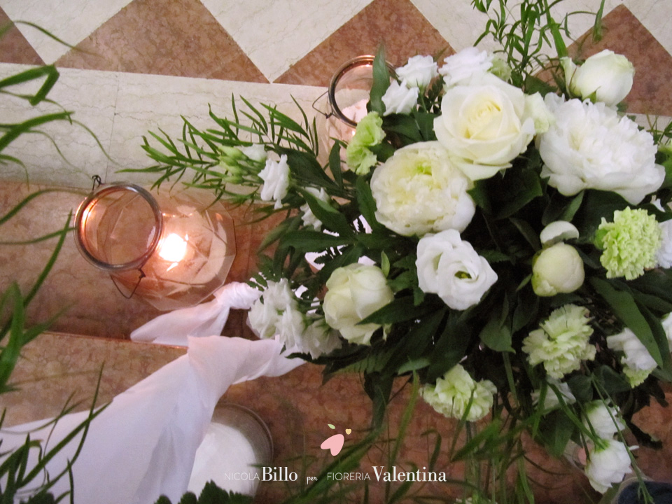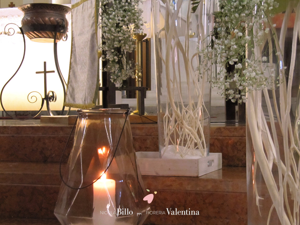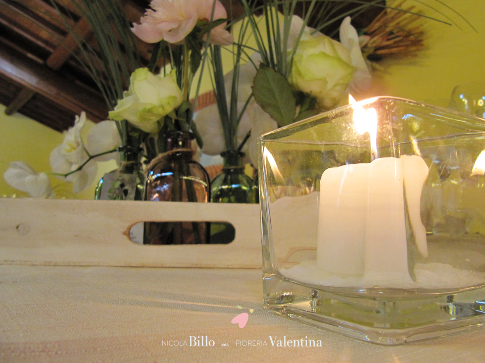 L’intimità,il calore delle candele e l’eleganza della gypsophila con le rose wedding