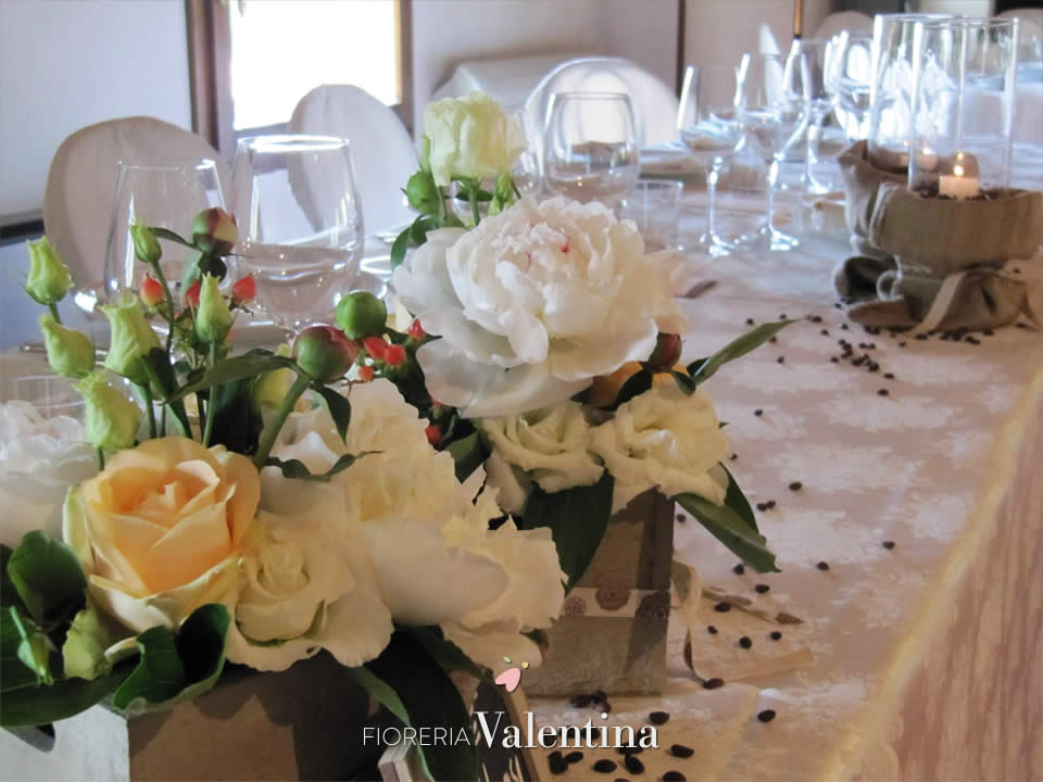 Lisianthus bianchi e ortensie, freschezza ed eleganza